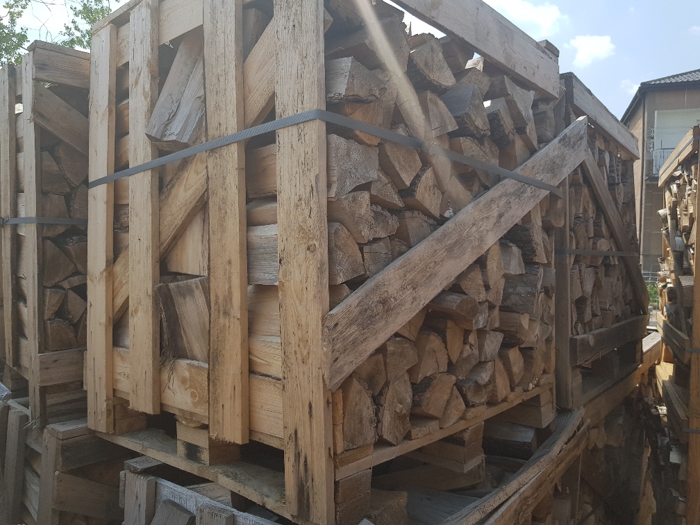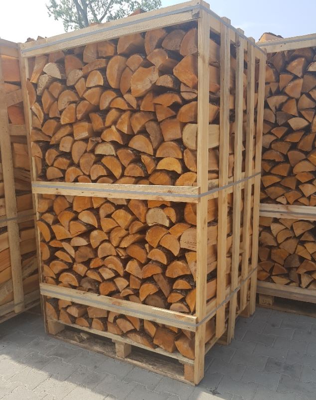 Olcha Sucha – sezonowana, drobno cięta, 30 cm, układana na paletach. Paleta to 1 metr przestrzenny drewna lub 2 metry przestrzenne w przypadku wybrania opcji podwójnej palety.