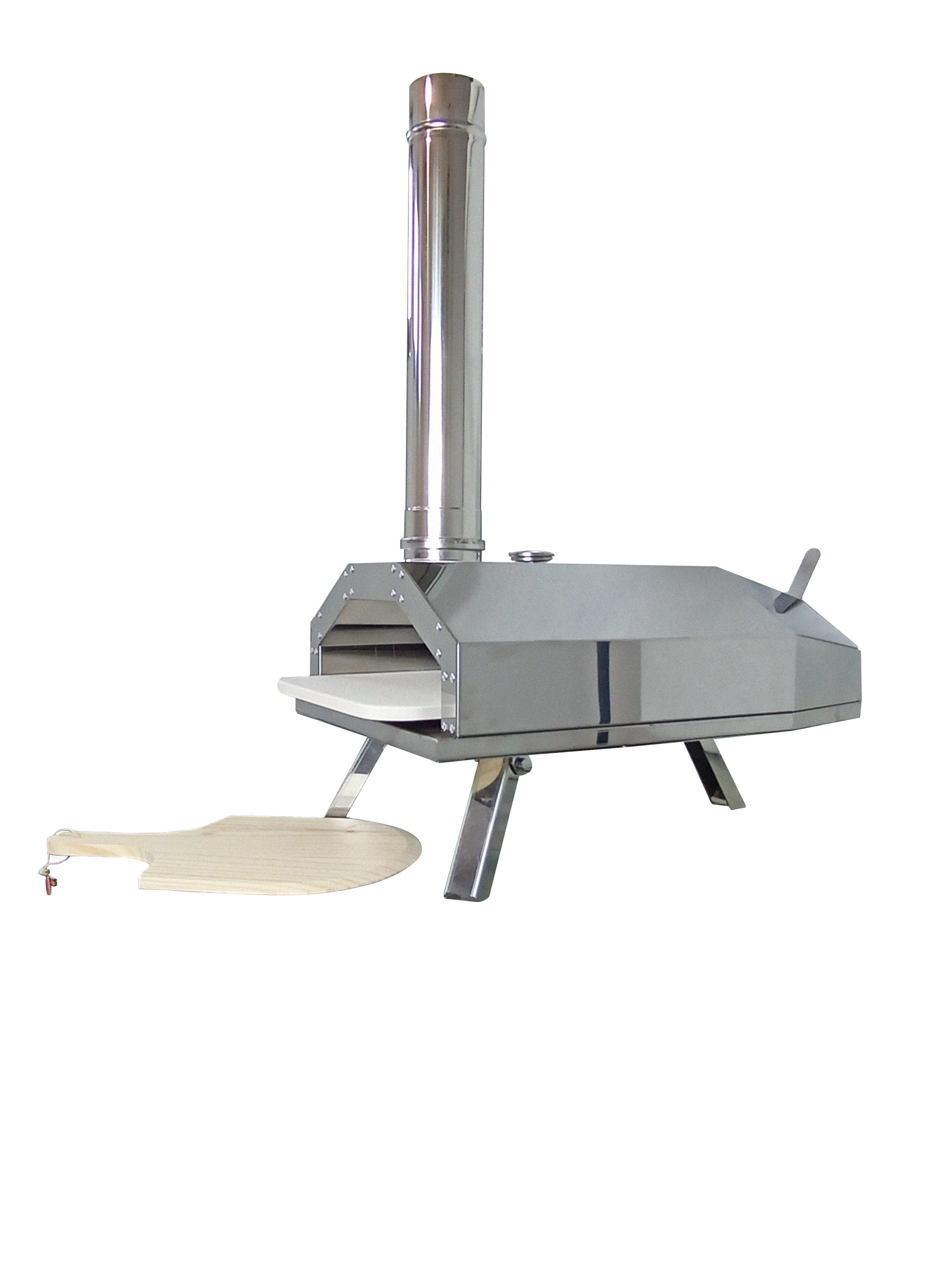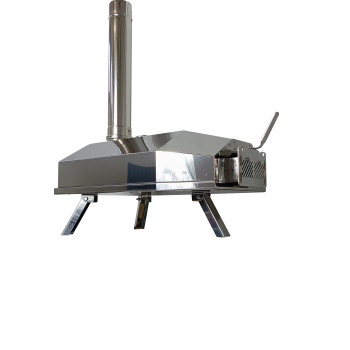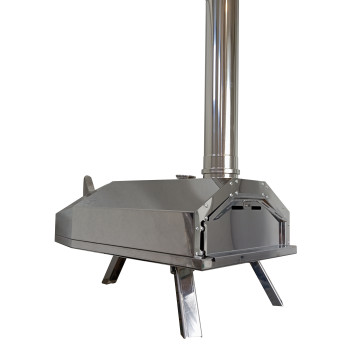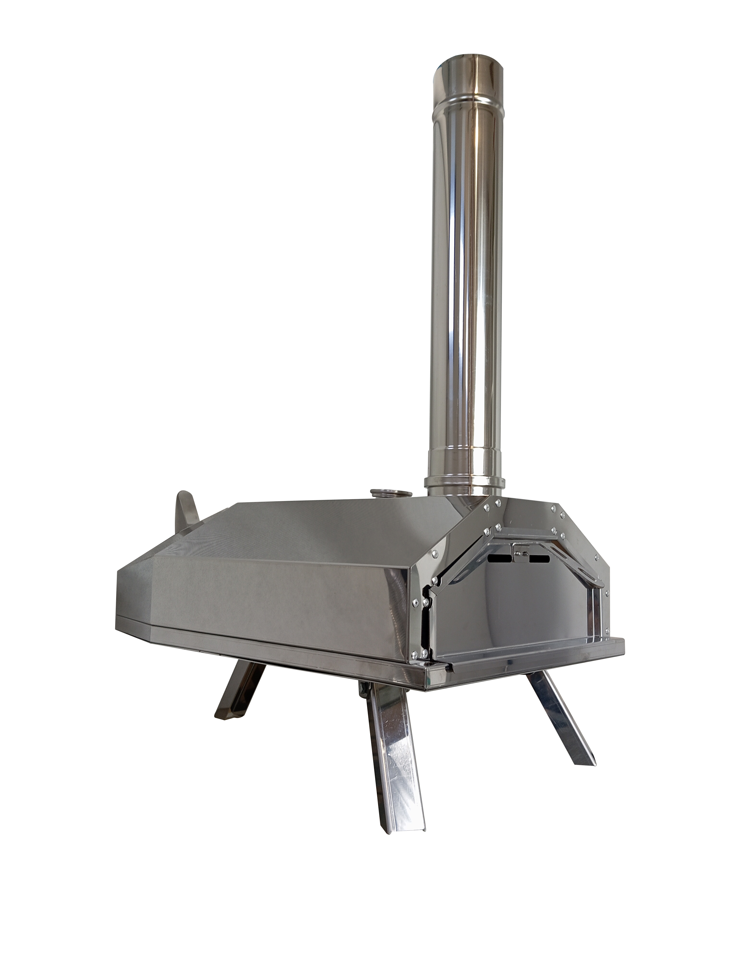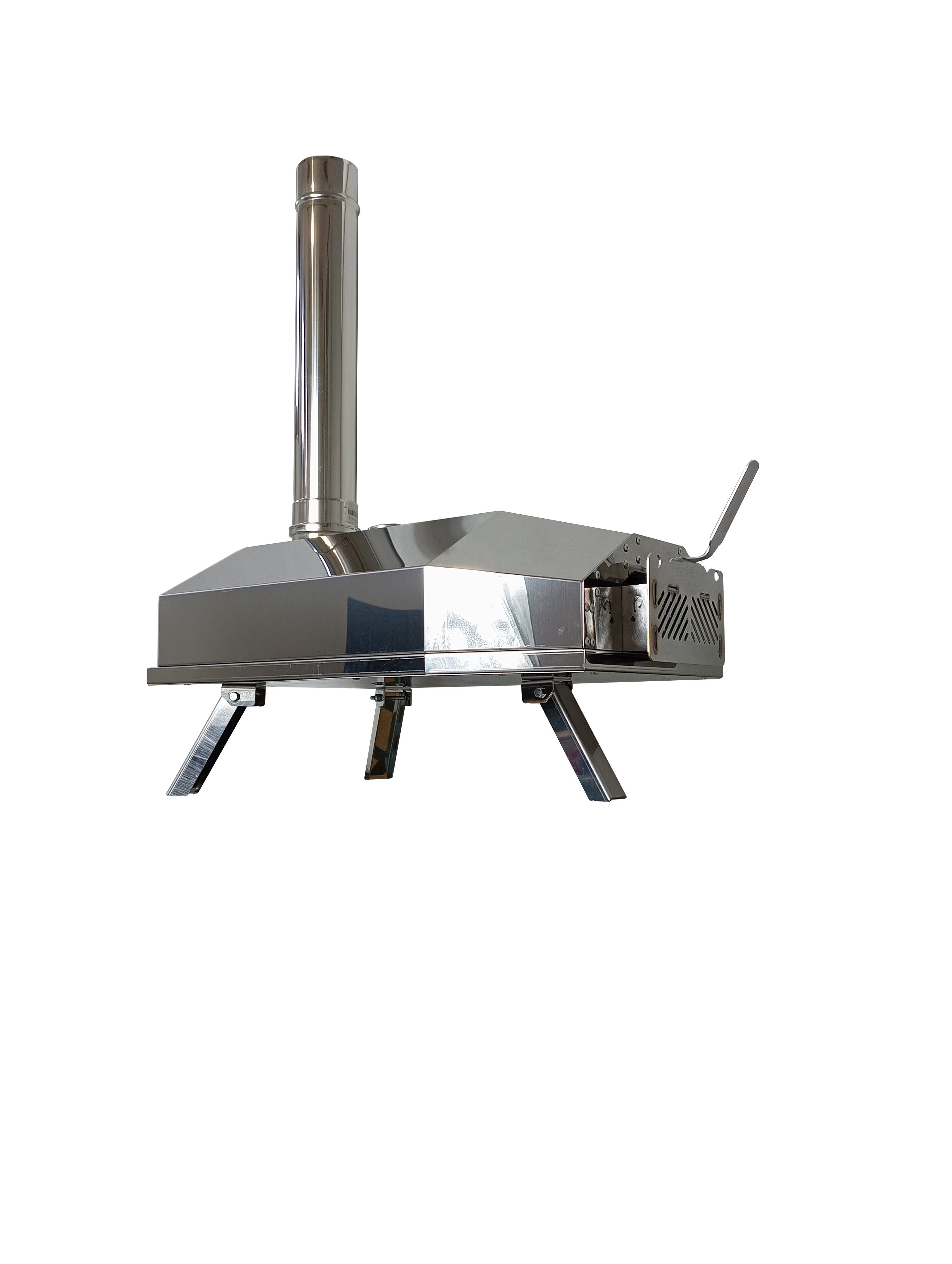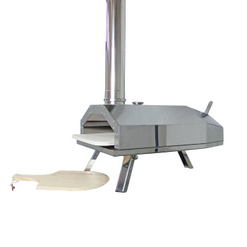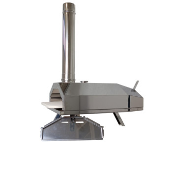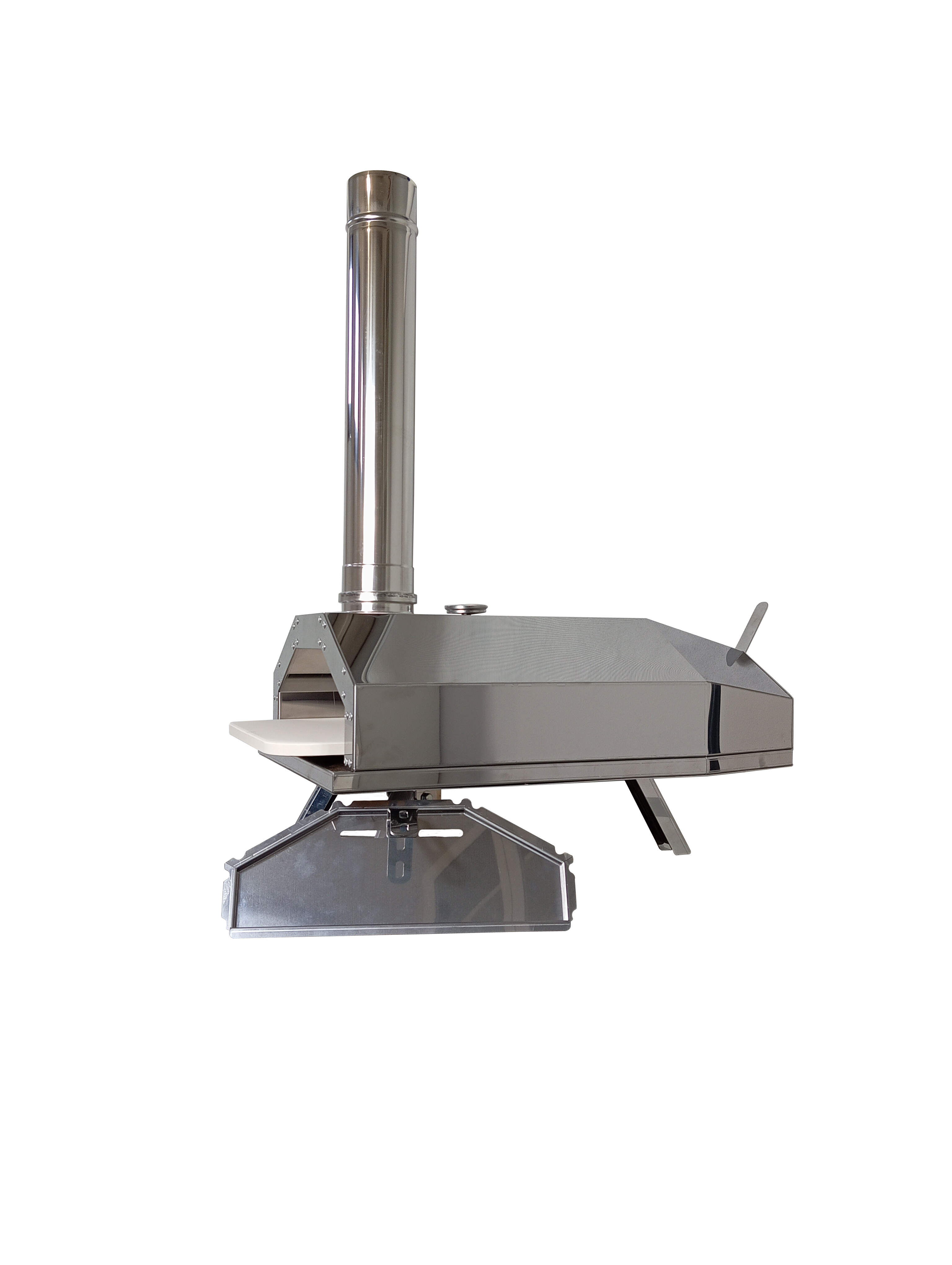 Piecyk na pizzę opalany pelletem zaprojektowany tak aby osiągać temperaturę 500°C w zaledwie kilka minut, idealny do zastosowania w ogrodzie lub tarasie.