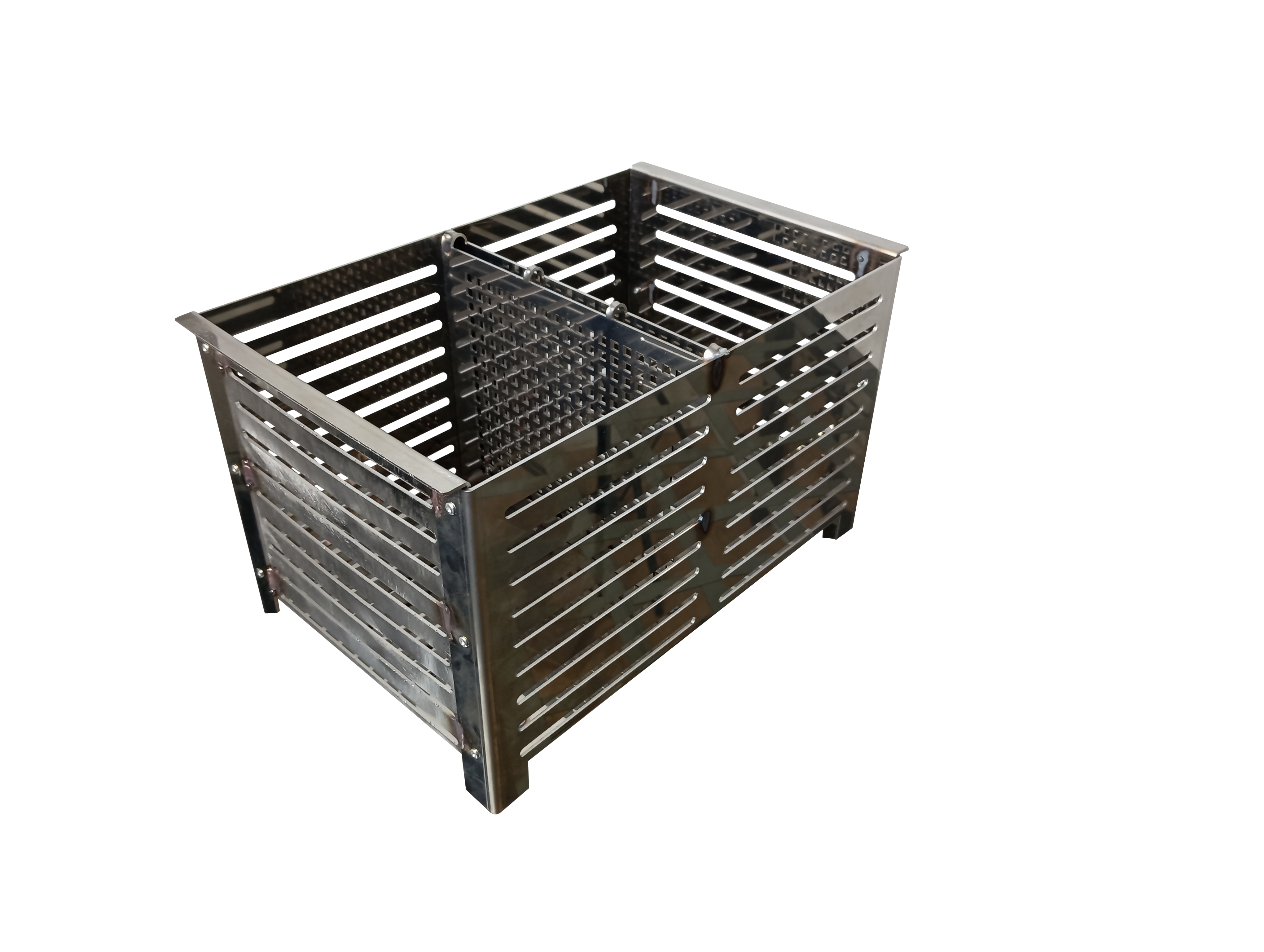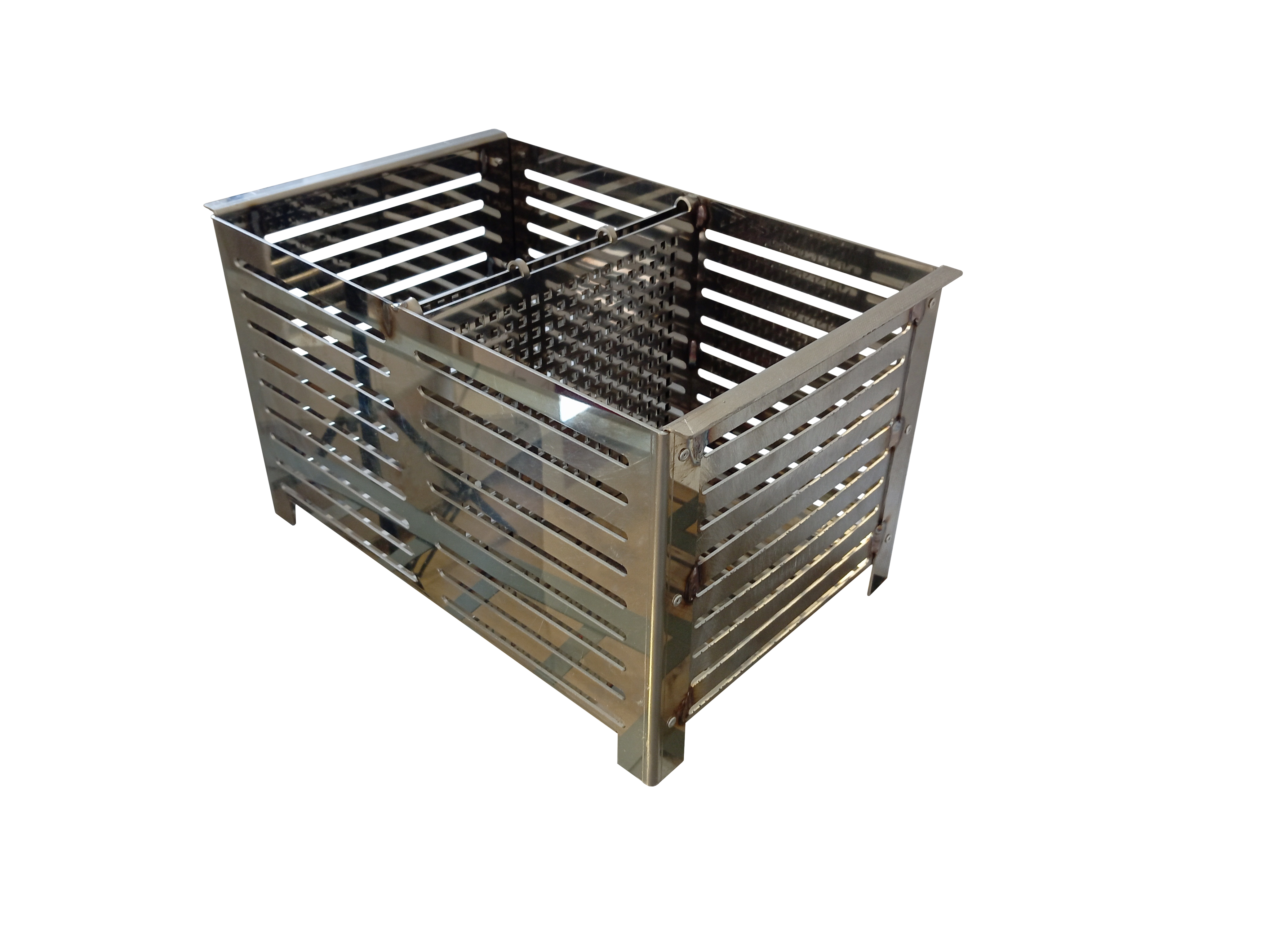 Koszyk na pellet z blachy kwasowej. Bardzo trwały i odporny na bardzo wysokie temperatury.